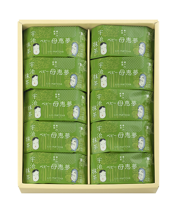 瀬戸内銘菓「ベビー母恵夢」と150年の歴史を持つ京都創業の相伝御茶所「宇治園」がコラボレーション。 創業以来、茶一途に取り組まれてきた老舗店の厳選された宇治抹茶を使用し、お茶本来の上品でコクのある味わいをお楽しみください。