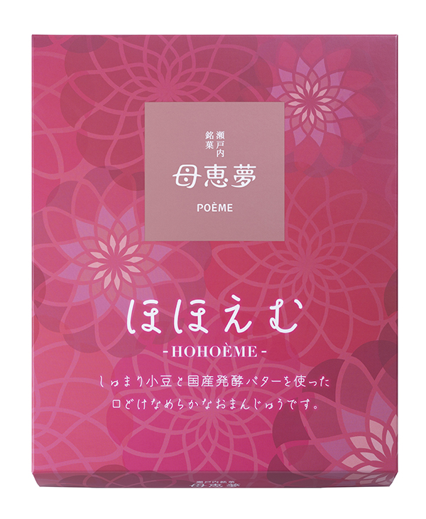 小豆の中でも色・コク・香りともに評価が高い希少な「しゅまり小豆」とともに、国産の発酵バターを使って仕上げた餡を、極薄の生地で包んだ、口どけなめらかなおまんじゅう。「ベビー母恵夢」誕生55周年を記念して研究・開発した新しい乳菓です。