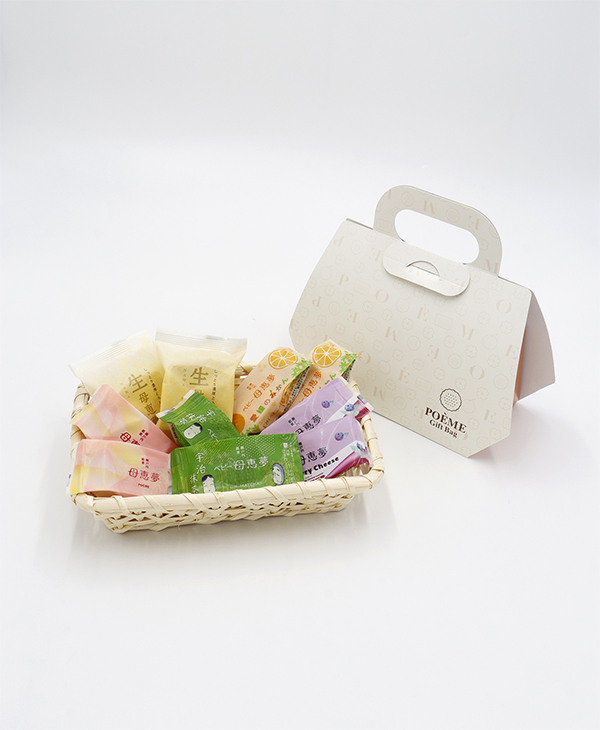 「ベビー母恵夢」「ベビー母恵夢愛媛のみかん」「生母恵夢」「ベビー母恵夢宇治抹茶」「ベビー母恵夢ブルーベリーチーズ」が2個ずつ、計10個入っています。 人気の5種類を少しずつお楽しみいただける詰合せです♪ 手土産や大切な方へのプレゼントにも是非ご利用ください。