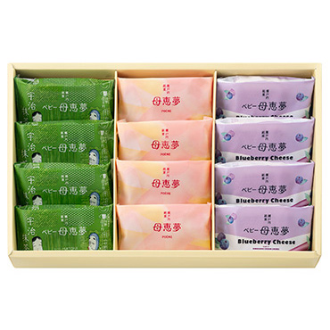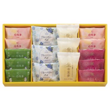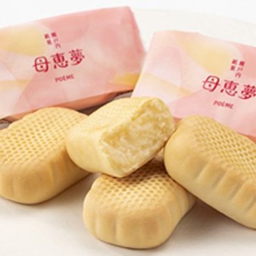 通常の生母恵夢と同じでございます。生地と餡が一体となった、なめらかな口どけの商品です。鳴門金時芋をベースにバターをたっぷり使った生地でアーモンドミルクを加えたしっとりとした黄味餡を包みました。